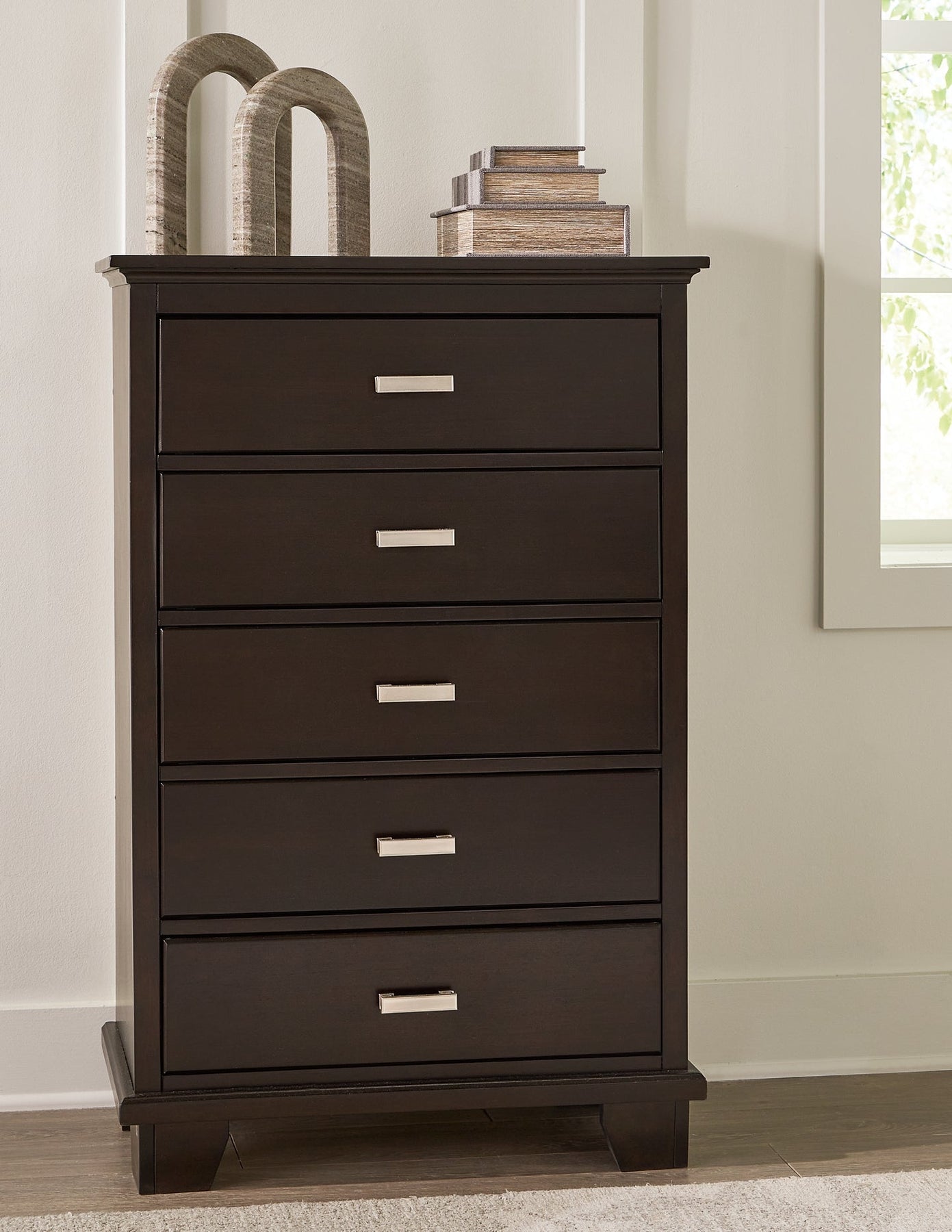 B441B4: Includes panel headboard, footboard, rails and slats, Made with hardwood solids, engineered wood veneer and MDF substrates, Dark brown finish, Floating panel headboard, Picture frame footboard, Foundation/box spring required, sold separately , Mattress available, sold separately, Assembly required, B441B1: Includes dresser and mirror, Made with hardwood solids, engineered wood veneer and MDF substrates, Dark brown finish, Metal bar pulls with bright nickel-tone finish, 7 smooth-gliding drawers with dovetail construction and metal center guides, Drawer interiors are lined with a wood grain laminate for a clean, finished look, Top moulding on dresser, Mirror attaches to back of dresser, B441-46: Made with hardwood solids, engineered wood veneer and MDF substrates, Dark brown finish, Metal bar pulls with bright nickel-tone finish, 5 smooth-gliding drawers with dovetail construction and metal center guides, Drawer interiors are lined with a wood grain laminate for a clean, finished look, Top moulding, B441-92: Made with hardwood solids, engineered wood veneer and MDF substrates, Dark brown finish, Metal bar pulls with bright nickel-tone finish, 2 smooth-gliding drawers with dovetail construction and metal center guides, Drawer interiors are lined with a wood grain laminate for a clean, finished look, Top moulding, |