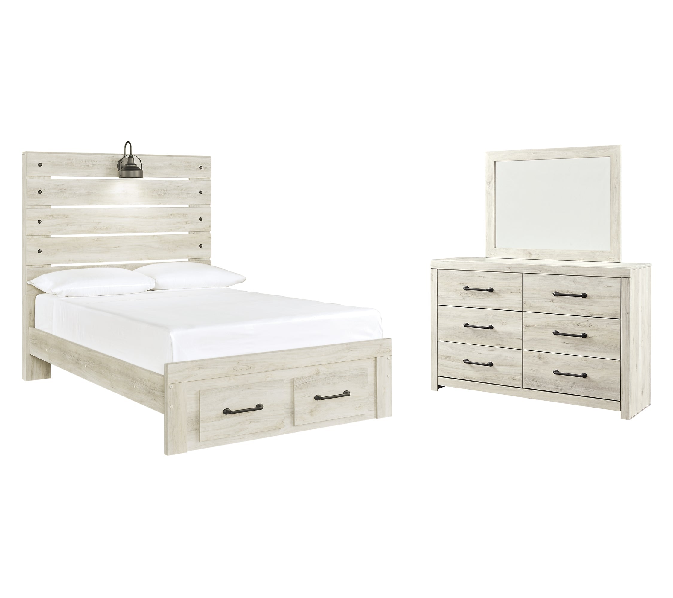 Cambeck Queen Panel Bed with 4 Storage Drawers with Mirrored Dresser
