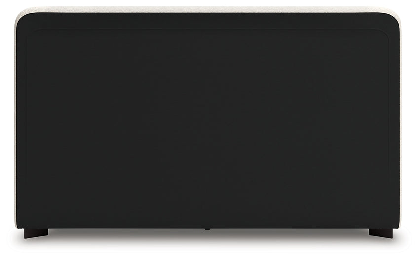 Details | Includes upholstered headboard, footboard and rails, Made with engineered wood frames, solid wood blocking, foam and fabric, Side rails feature laminated solid hardwood slat support rails (or LVL) with glued and screwed blocking for added strength, Polyester upholstery, Next-Gen Nuvella™ is a family-friendly fabric that is soft, easy to clean, stain-resistant and durable, Clean fabric with mild soap and water, let air dry; for stubborn stains, use a solution of 4 oz. bleach to 28 oz. water, Foundation/box spring required, sold separately, Mattress available, sold separately, Assembly required | |