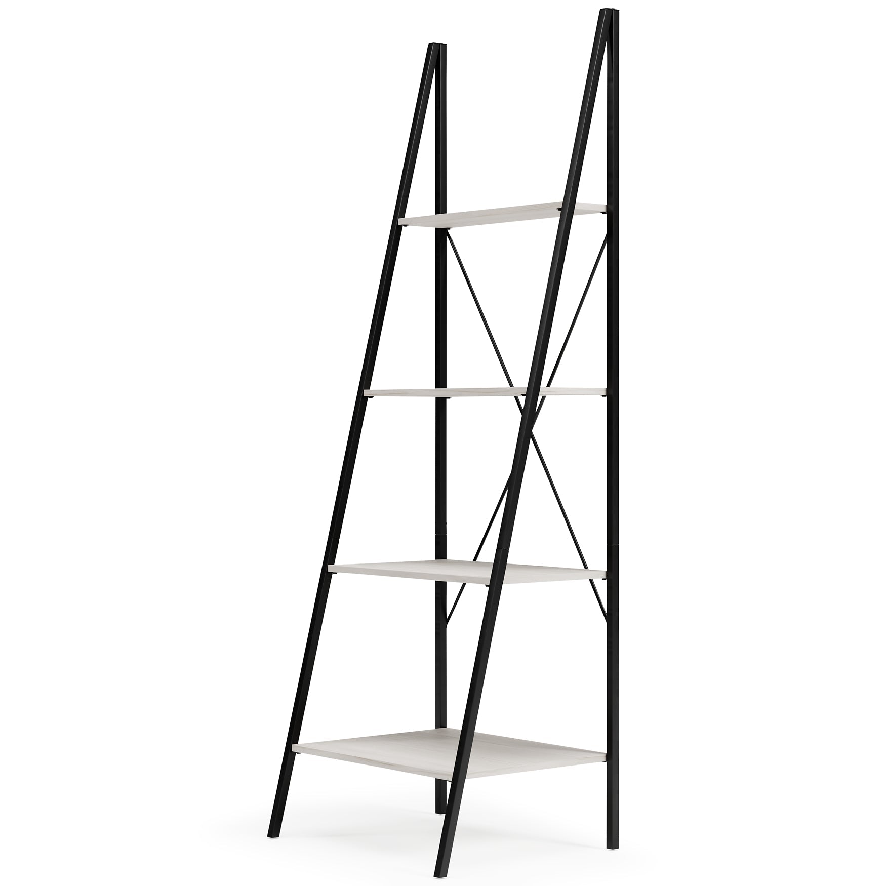 Details | Made of engineered wood and decorative laminate, Whitewashed woodgrain finish, Metal frame with gunmetal finish, 4 open shelves, Assembly required | |