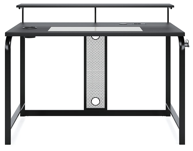 Details | Made of engineered wood and decorative laminate, Metal frame with black powder coated finish, Trackable inset PVC panel, Integrated cup holder, Custom headset hanger, Raised monitor stand with LED ambient lighting, Mesh modesty panel underneath for managing all your cords, Wireless Qi charger and 110V power supply with dual USB ports, Power cord included; UL Listed, Assembly required | |