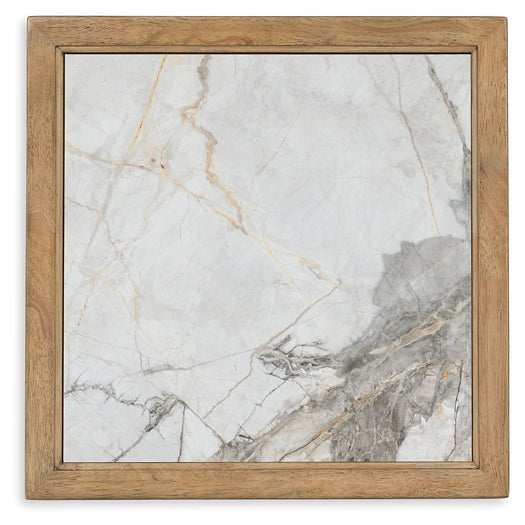 | Details | Made with hardwood solids, mango veneer, sintered stone and metal, Light natural wood-tone finish, Frame with black finish, Sintered stone is a non-porous, man-made material that mimics the look of natural stone, Lower shelf, Assembly required | |