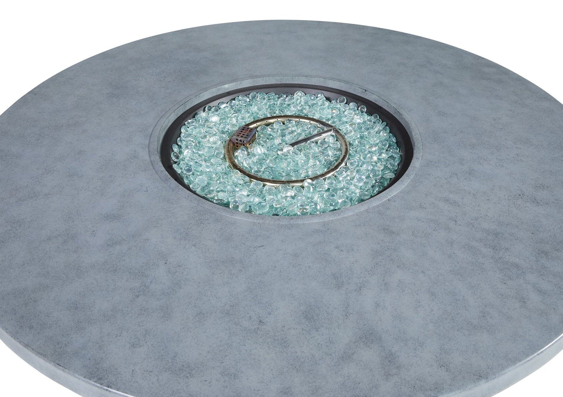 Details | Includes gas fire pit table with CSA-approved 55,000 BTU burner, glass beads, burner cover and protective weather cover, All-weather, powder coated rust-proof aluminum frame, Stainless steel hardware, Aluminum top with hand-applied faux concrete paint finish, Battery-operated ignition system with adjustable flame control; battery included, Cabinet door conceals gas propane tank (not included), Convertible to natural gas, Gas line or propane tank connector hose not provided, Assembly required | |