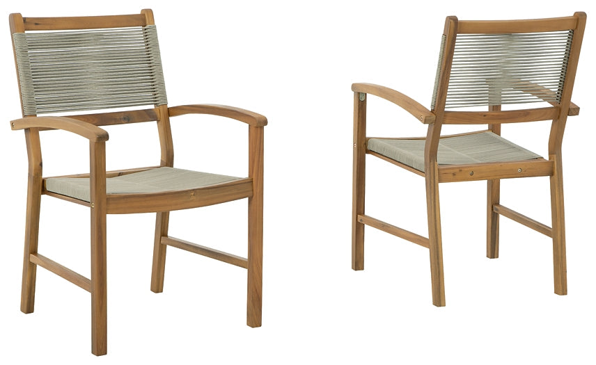 Details | Set of 2, Made with acacia wood, Beige rope seat and back, Stainless steel hardware, Assembly required | |