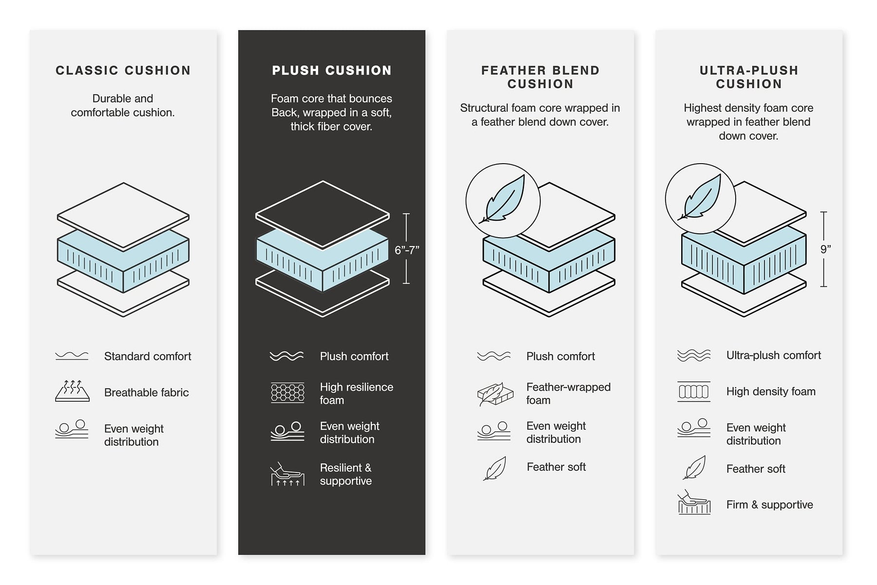 | Details | Plush seating, Corner-blocked frame, Reversible cushions, High-resiliency foam cushions wrapped in poly fiber, Platform foundation system resists sagging 3x better than spring system after 20,000 testing cycles by providing more even support, Smooth platform foundation maintains tight, wrinkle-free look without dips or sags that can occur over time with sinuous spring foundations, 5 toss pillows included, Pillows with soft polyfill, Polyester upholstery; polyester and polyester/linen pillows, Exposed feet with faux wood finish | |