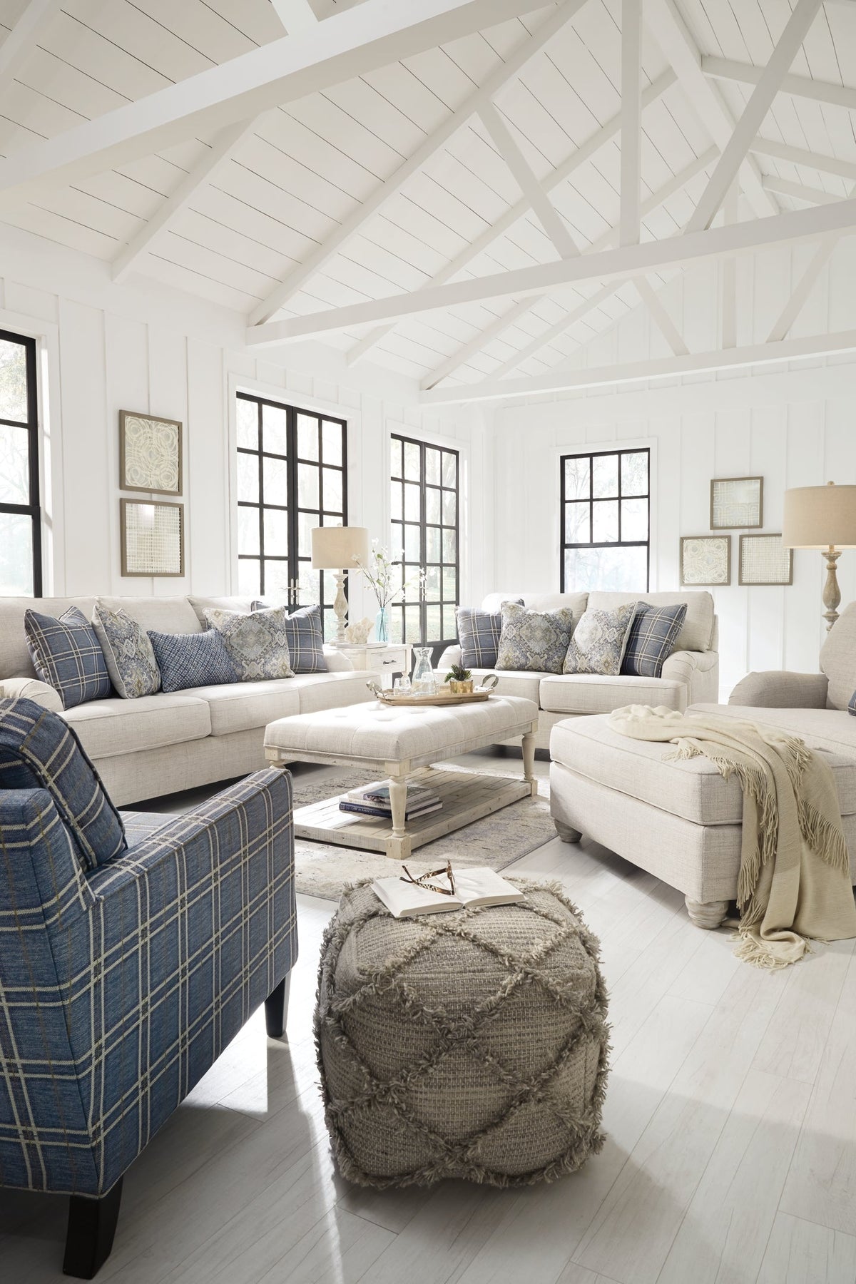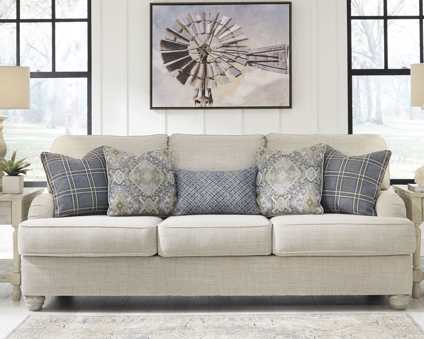 | Details | Corner-blocked frame, Attached back and reversible seat cushions, High-quality foam cushions wrapped in poly fiber, 5 toss pillows included, Polyester upholstery; polyester pillows, Exposed turned feet with faux wood finish, Platform foundation system resists sagging 3x better than spring system after 20,000 testing cycles by providing more even support, Smooth platform foundation maintains tight, wrinkle-free look without dips or sags that can occur over time with sinuous spring foundations | |