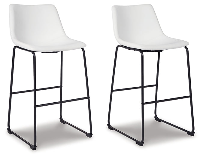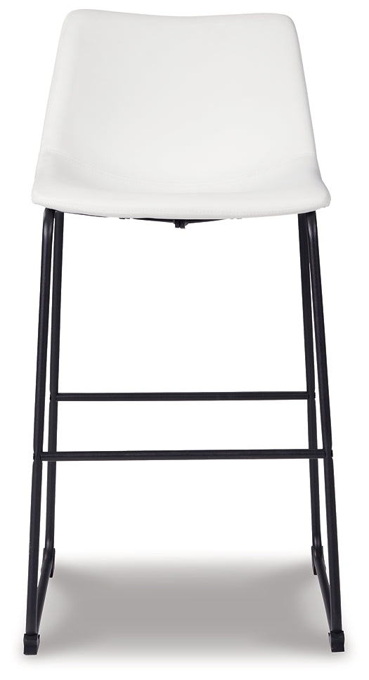 With its distinctive contoured bucket seat and tubular metal base, this upholstered bar stool serves up a fresh twist on mid-century inspired style. Practical faux leather has a charmingly vintage tone. What a timeless look for eat-in kitchens and casually cool dining rooms.
