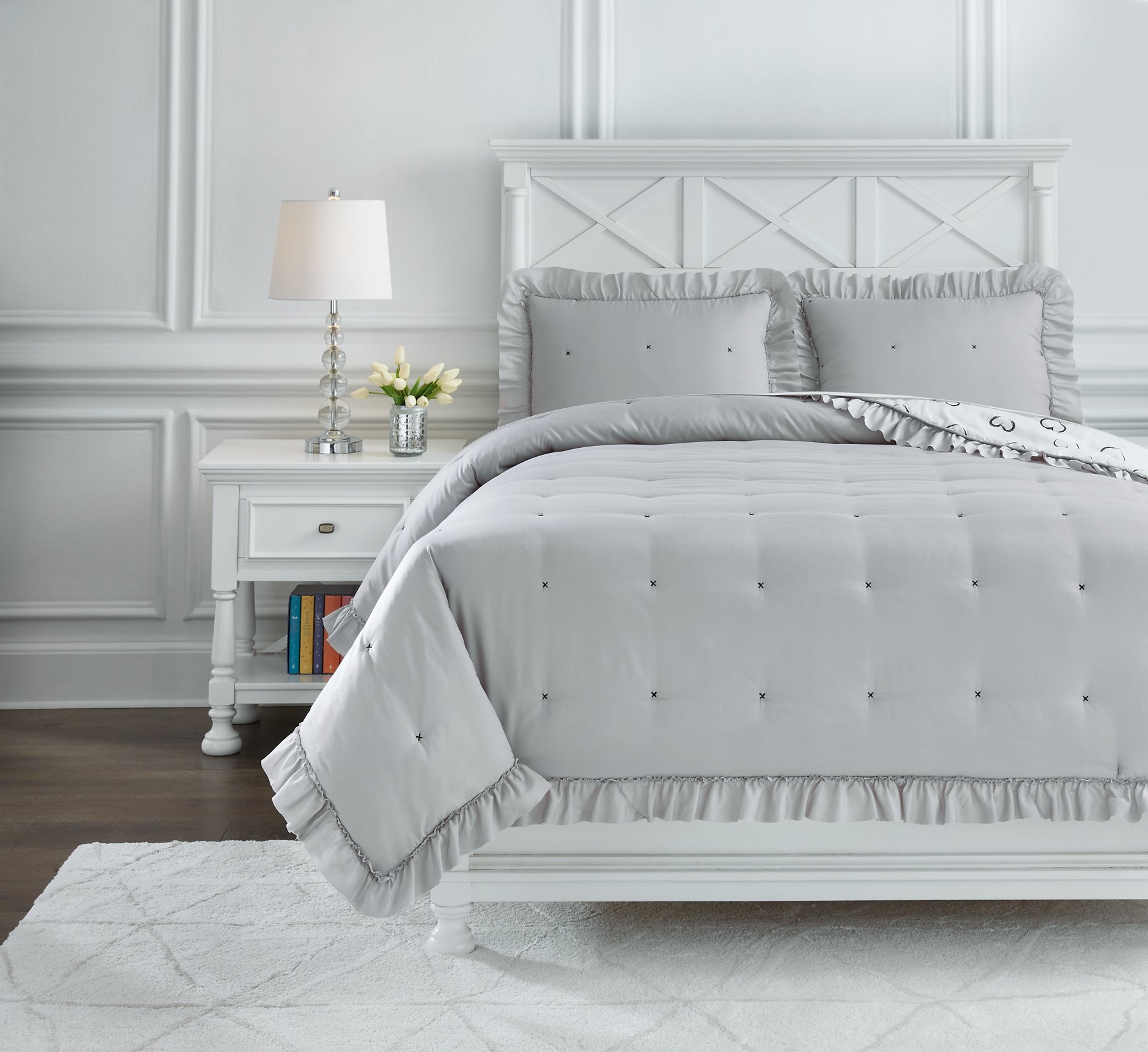 | Details | Includes full comforter and 2 shams, Polyester microfiber cover, Reversible, Soft polyfill, Machine washable, Imported | |