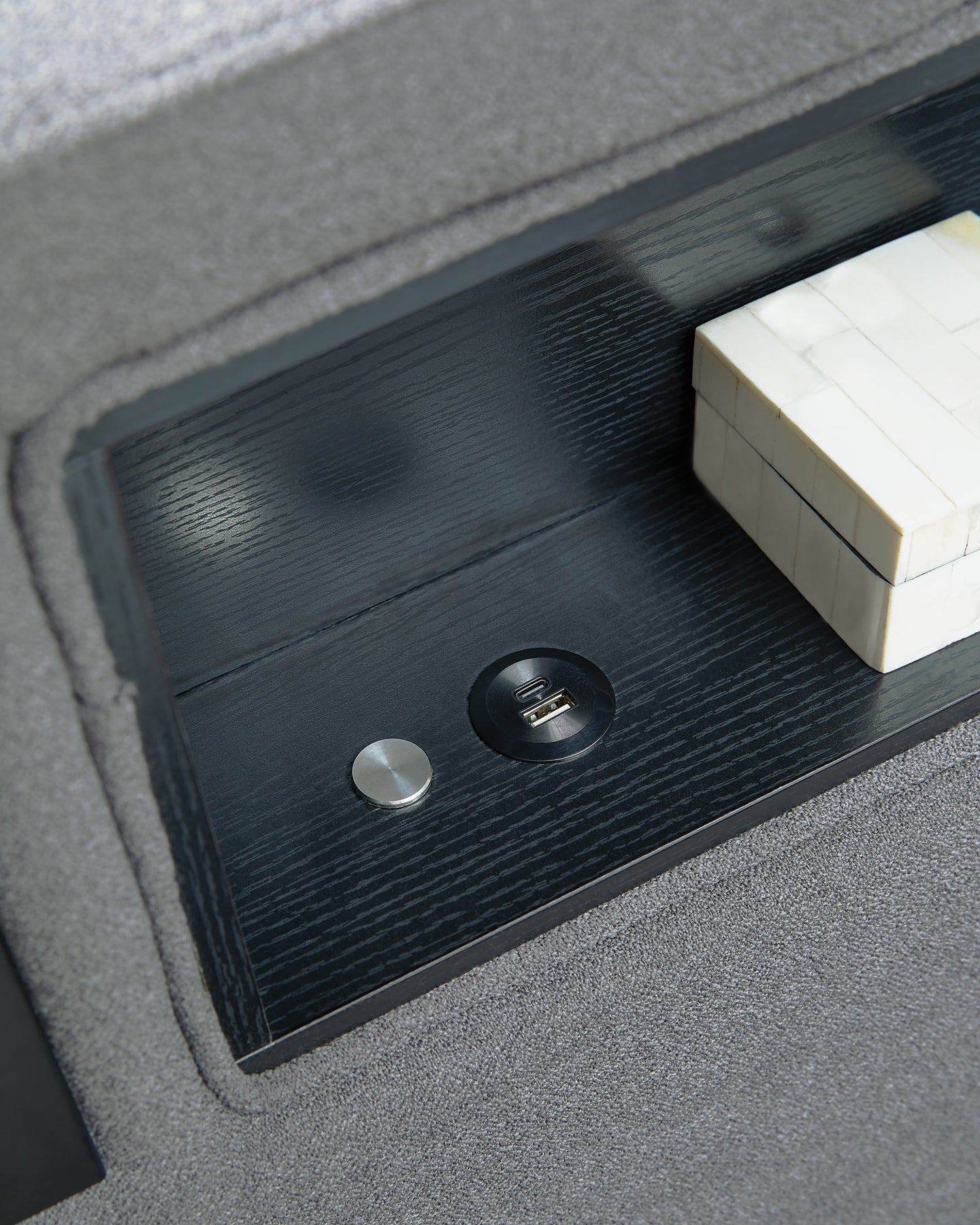 Snooze in style with this king upholstered bed. It brings delightful function to winding down before bedtime, with an adjustable LED reading light on each side. And for added flair, multicolored ambient lighting brings an ultra-cool vibe to the overall look. Combining modern convenience with captivating design, this bed revamps your restful retreat like never before.