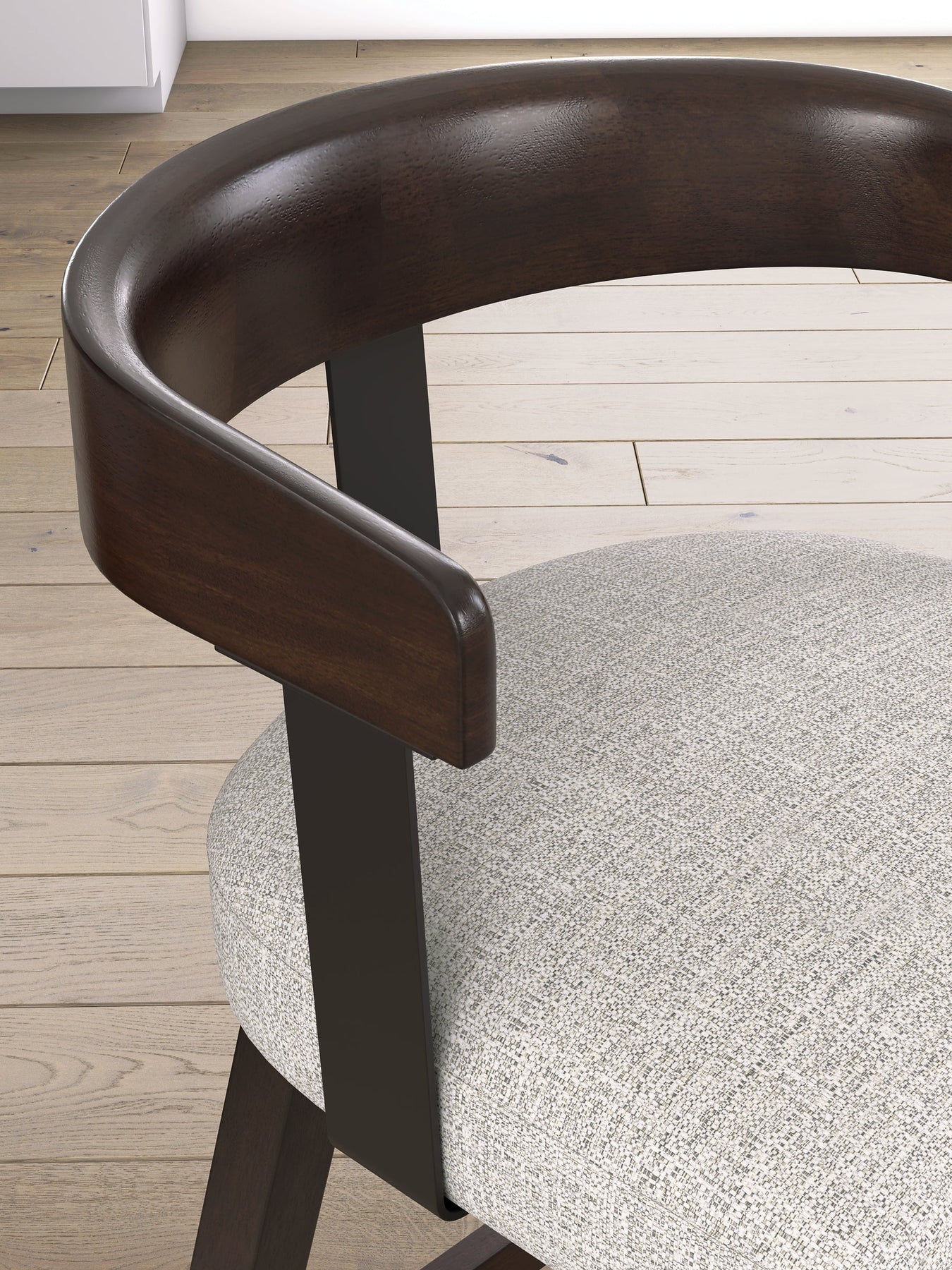 | Details | Made with solid wood frame, Dry, smoky dark brown oak finish, Polyester upholstery, Foam cushioned seat, 360-degree swivel, Assembly required | |
